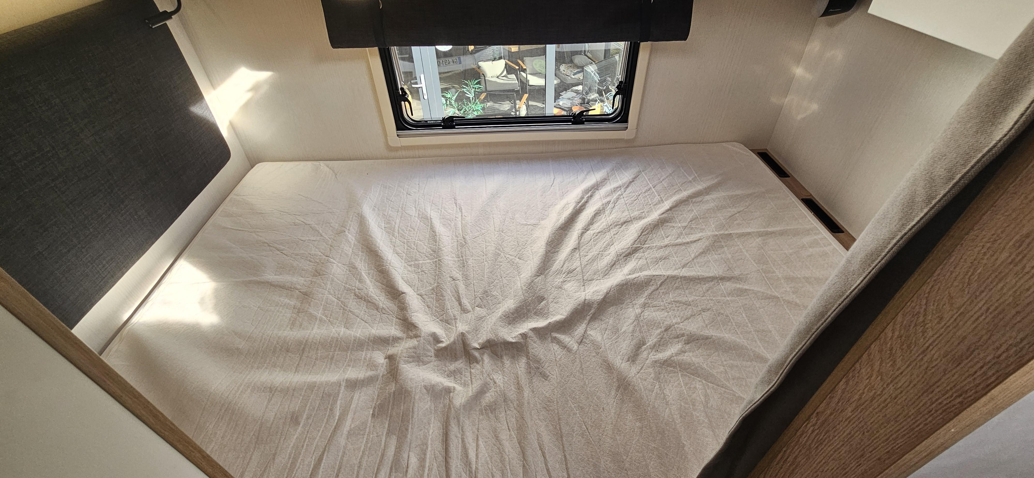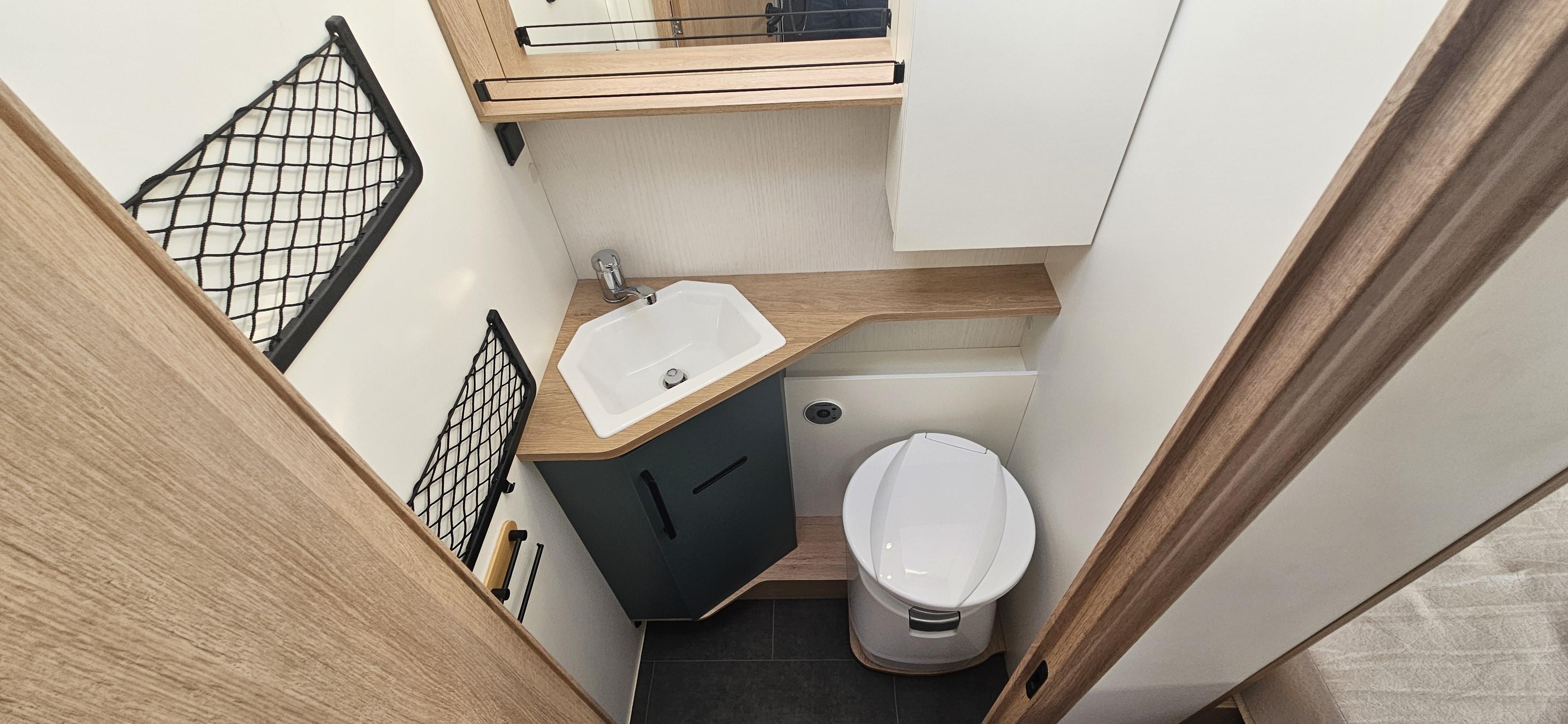 IMPLANTATION/ Lit sur soute, lit pavillon, salon avec banquette face/face, douche et wc séparés