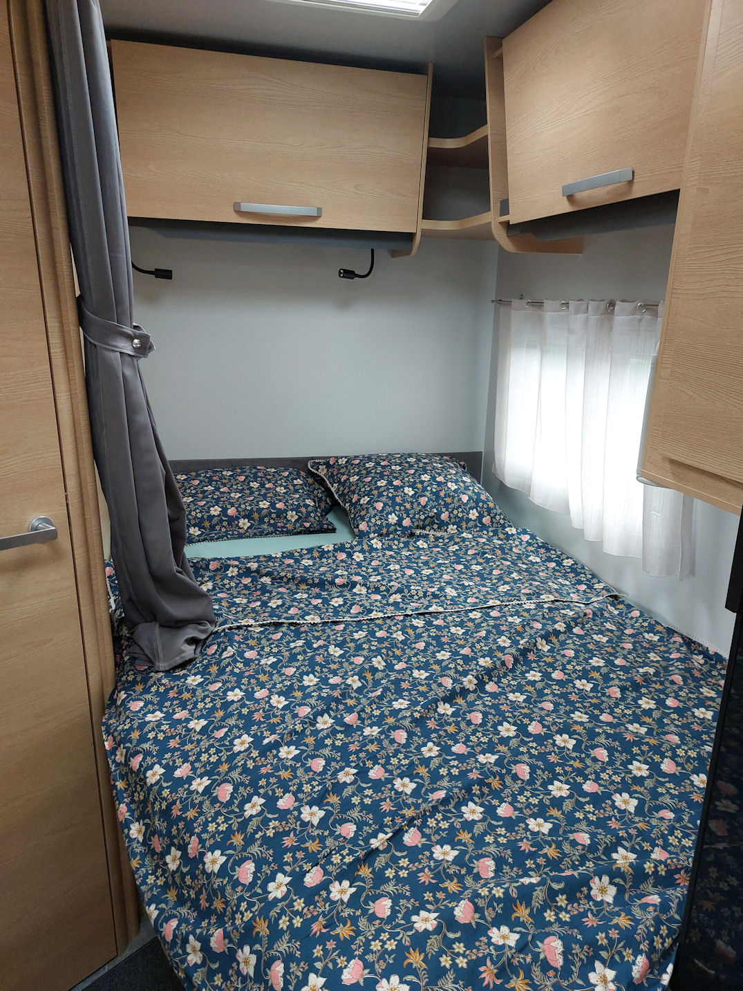 C’est un très beau camping-car, de qualité supérieure italienne, disposant de 4 places carte grise et de 3 couchages (1 lit double à la française 136 x 196 cm + 1 lit simple pavillon qui se baisse électriquement en 96/78 x 196 cm).