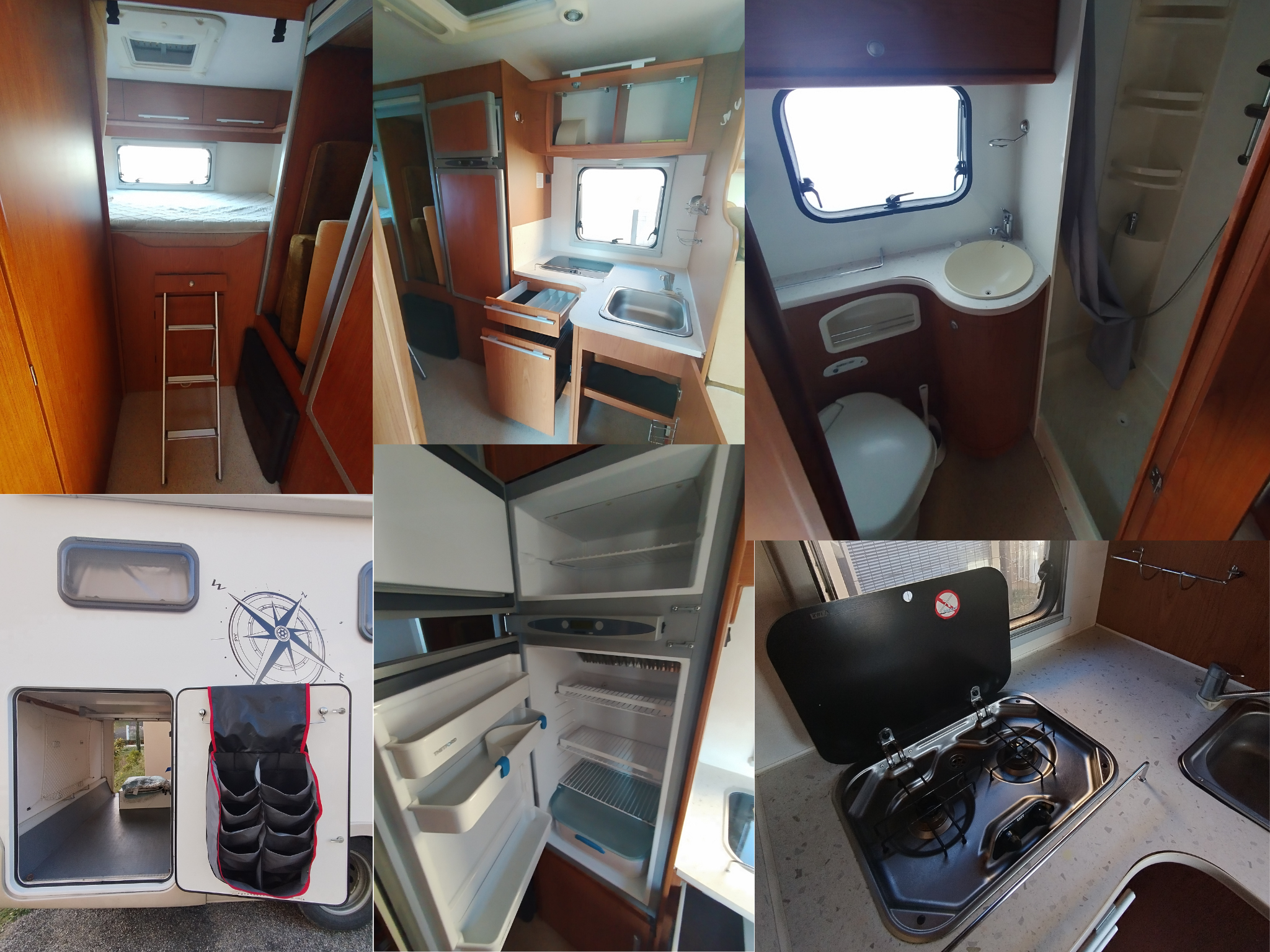 - 1 lit double permanent à l'arrière (220 x 132 cm) echelle pour monter