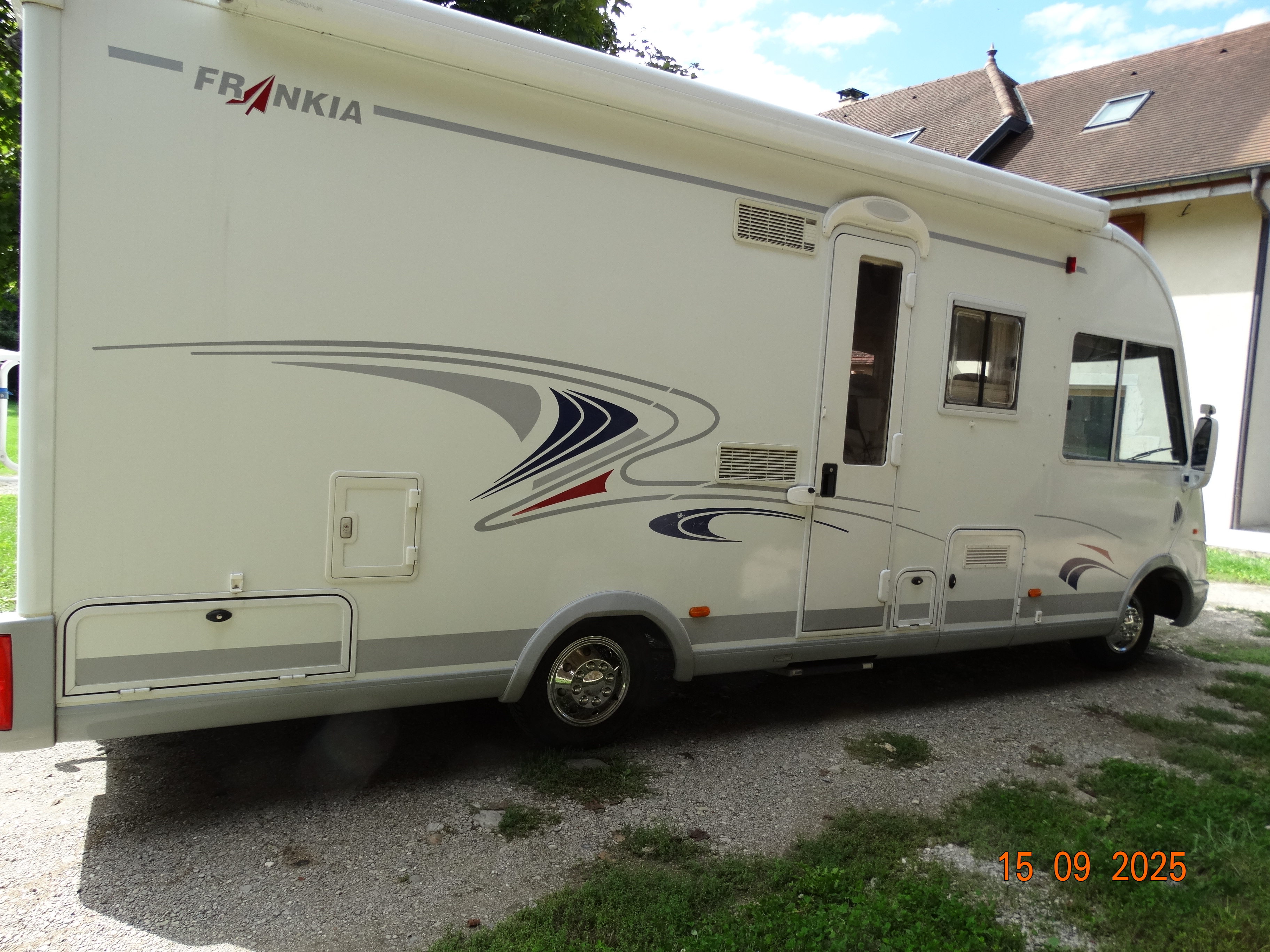 SUPER FRANKIA I 800 confort 2005. Très équipé avec grande autonomie 120 litre seau propre 120 litres eau usées pompe neuve. double Cassettes ; Frein Telma super utile surtout en montagne amortisseurs pneumatique arrière. Attache remorque. Porte deux vélos. Très propre frigo + congélateur. révisé récemment. Une bouteille propane et une bouteille GPL 13Kg (prix de la recharge 11 euros ) Clim réversible. Sèche serviette chauffant dans la douche. Tout l'éclairage intérieur en LED. batterie lithium grande capacité 150 ampères panneau solaire. antenne automatique Alden automatique TV connectée moteur Mercedes 5 cylindres 156 chevaux vient d'être révisé (pompe et injecteurs). rideau plissé sur l'ensemble des vitrages y compris cabine. Rideau Soplair extérieur cabine porteur. Possibilité de rester une semaine sans ravitailler si on consomme pas trop d'eau. Un excellent camping car. Test étanchéité réalisé le 9.12.25 aucun problème décelé. Passe en carrosserie le 15 décembre pour petit raccord de peinture. Dispo vers le 20 décembre. contact par téléphone: 0619277067. Prix demandé: 35000 négociable après avoir vu le Cc. Cordialement