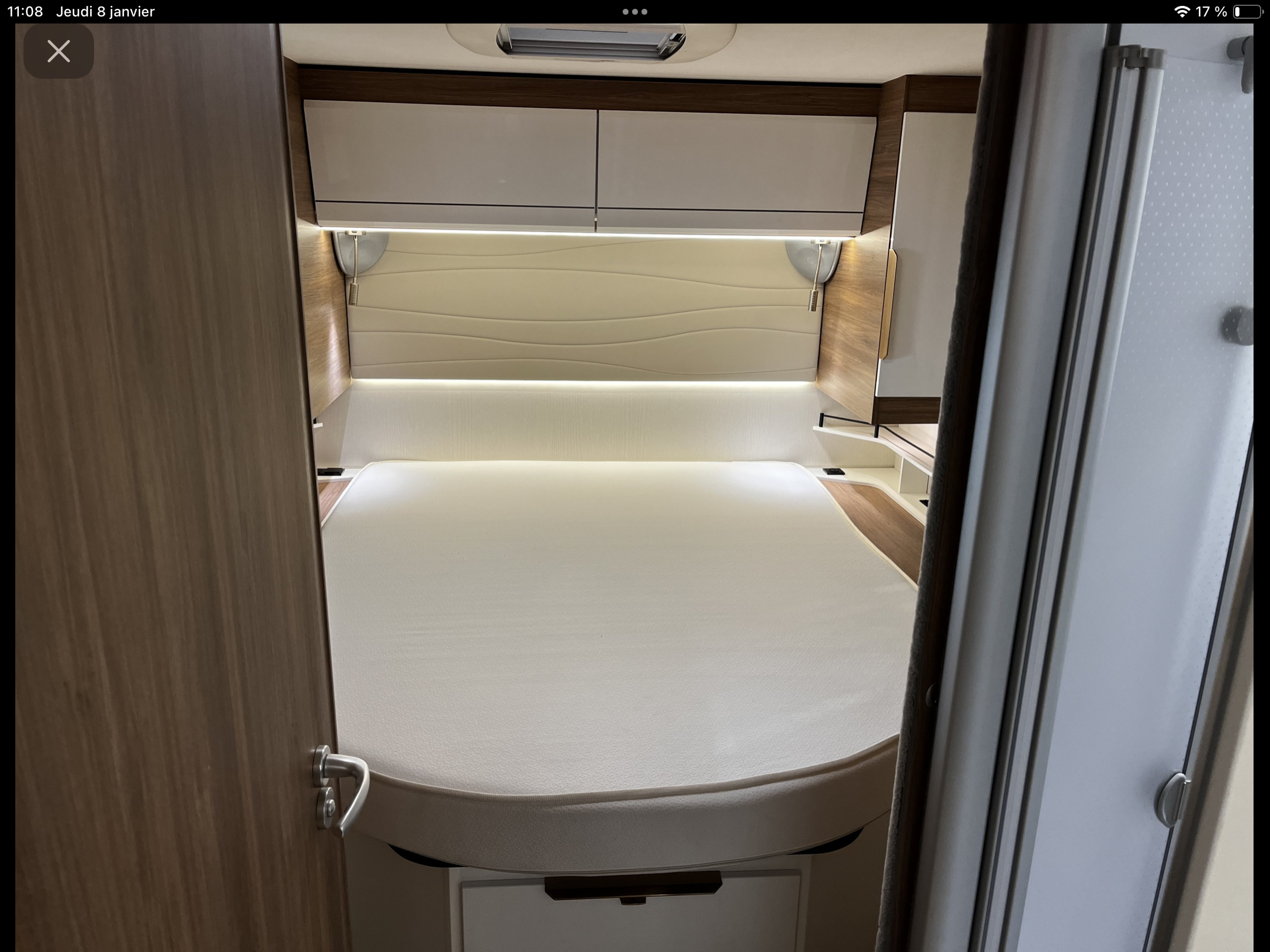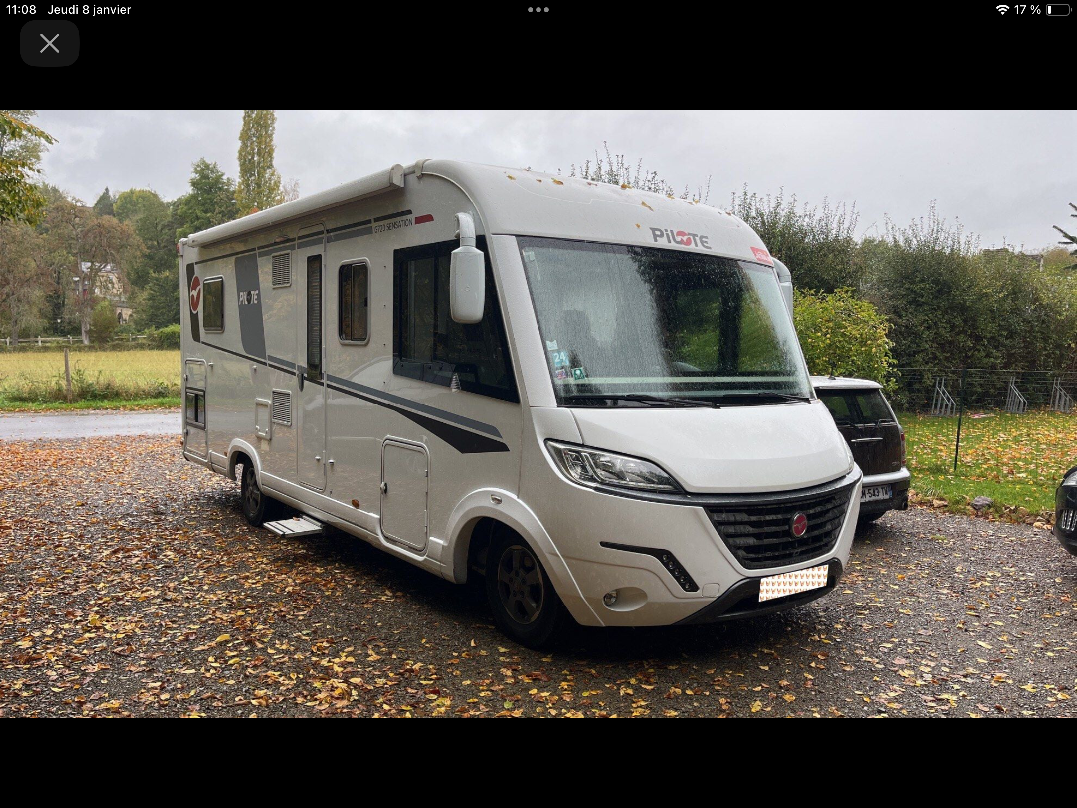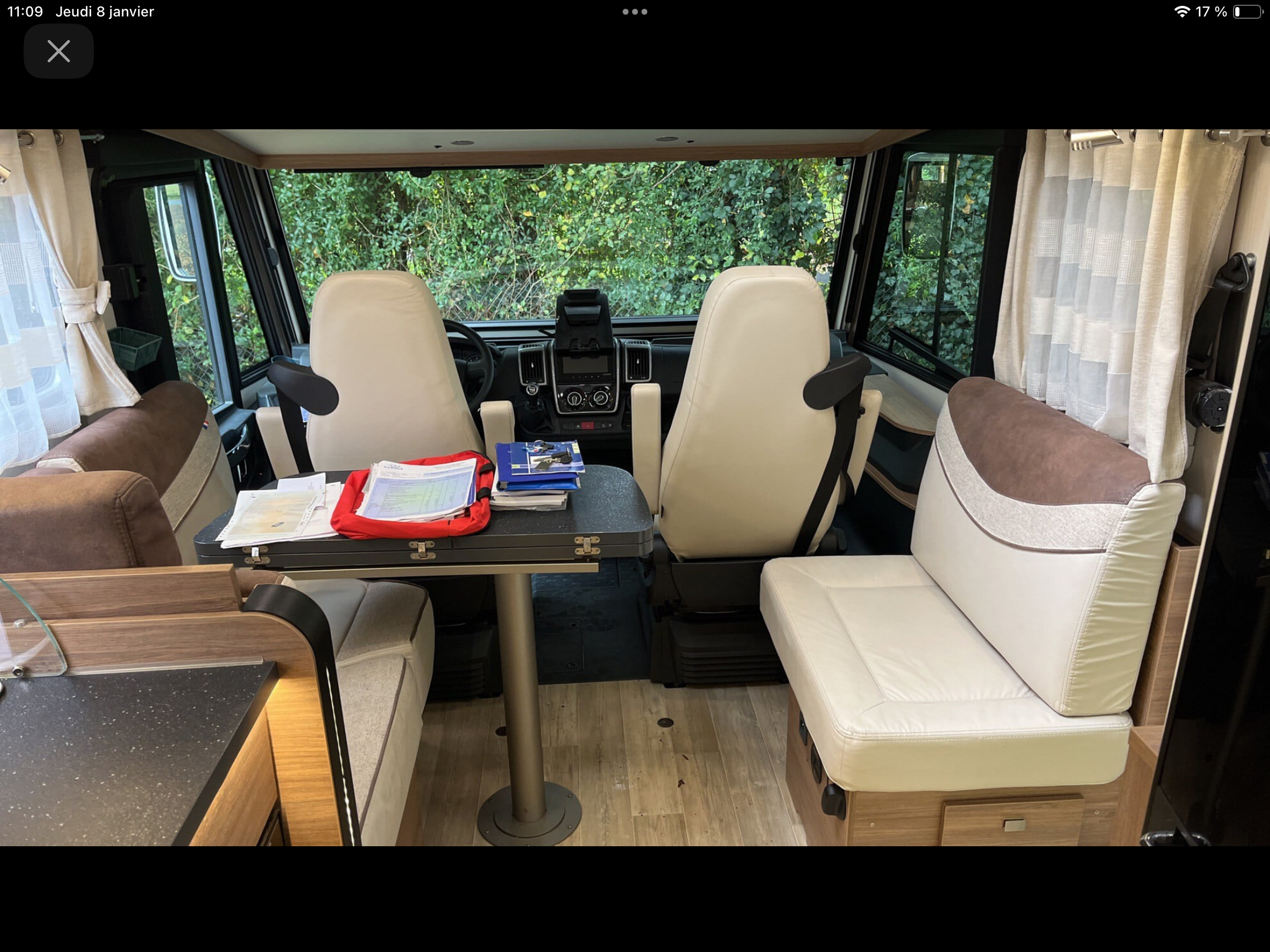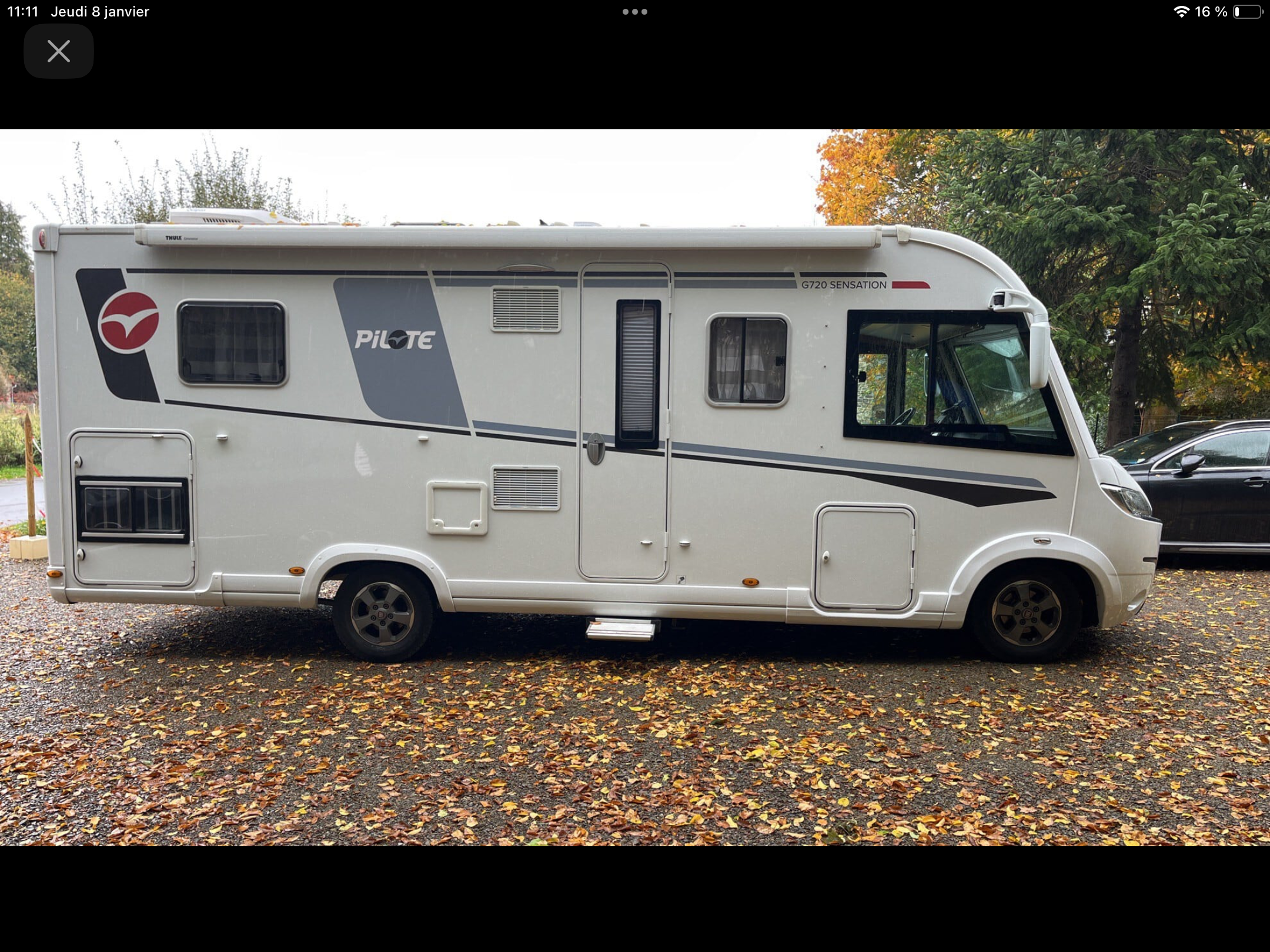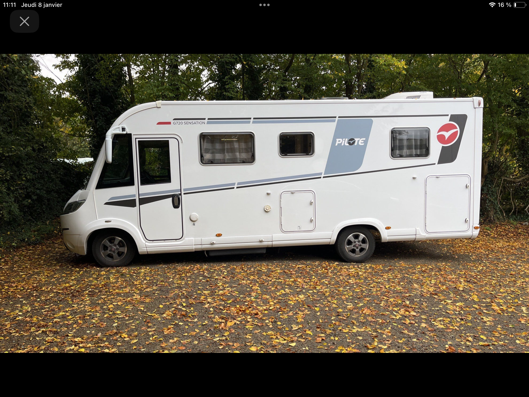 Intégral Pilote G720FC Sensation, en très bon état, du 26/02/2020. Véhicule superbement équipé avec une chambre et un lit central 150x190. Une douche et un WC séparés, une cuisine équpée avec plaque à gaz, four, évier, frigo trimixte, salon face face pouvant asseoir jusqu’à 6 personnes et un lit pavillon 150x190 au dessus du poste de conduite. Il y a une suspension pneumatique arrière, une TV connectée Antarion, une antenne satellite, une antenne 4G Antarion avec système wifi. Une climatisation dans la chambre, un convertisseur 2000W, 2 batteries cellule Varta , datant de mai 2024 de 95Ah chacune. Réservoir eau propre 100L, idem eau grises, 2 cassettes WC. Toutes les vitres sont équipées de stores et moustiquaires. Un grand store extérieur de 5m de long. Tiroir de rangement extérieur pouvant charger jusqu’à 70kg, compartiment à gaz pour 2 bonbonnes avec inverseur automatique et crash sensor. Une énorme soute à bagages, dont une porte équipée d’une fenêtre avec store et moustiquaire si vous voulez voyager avec votre chien. Un accès à été fait vers la chambre depuis la soute pour permettre à votre chien de venir dans l’habitacle mais j’ai gardé le panneau original si vous voulez le refermer.